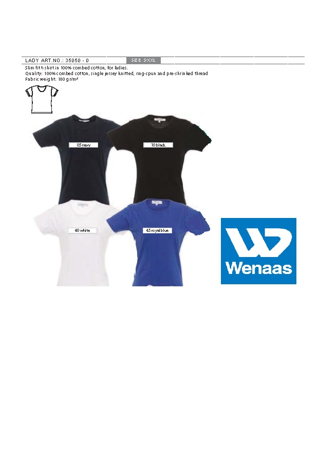 Wenaas T-shirt Slim Fit Ladies 100% combed cotton 180 gr/m2 – 35050